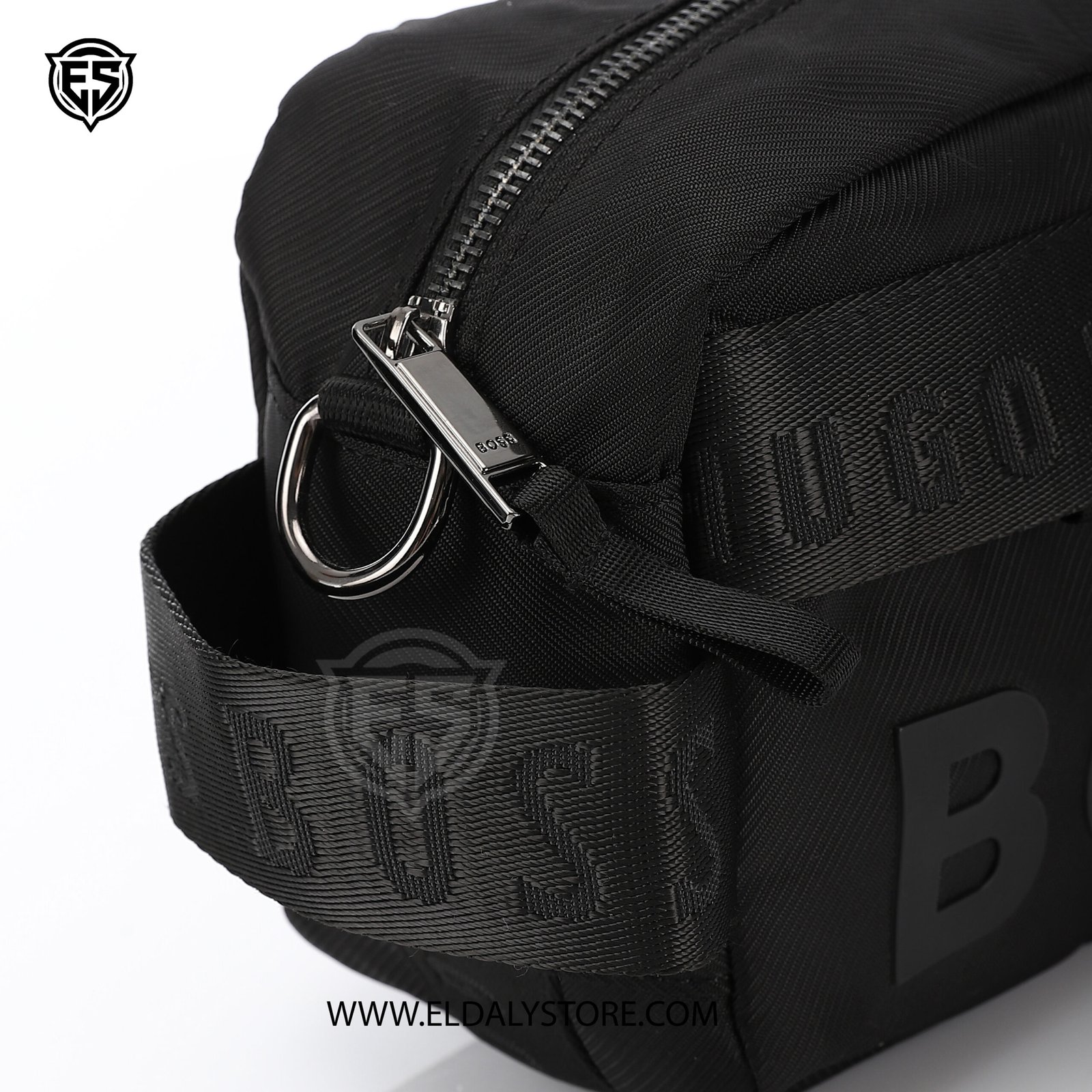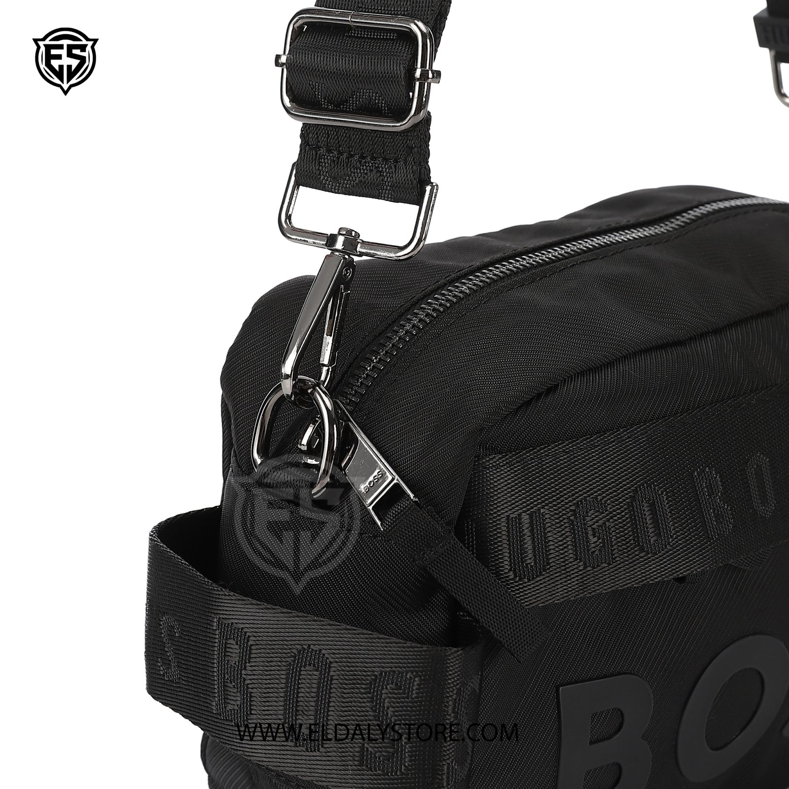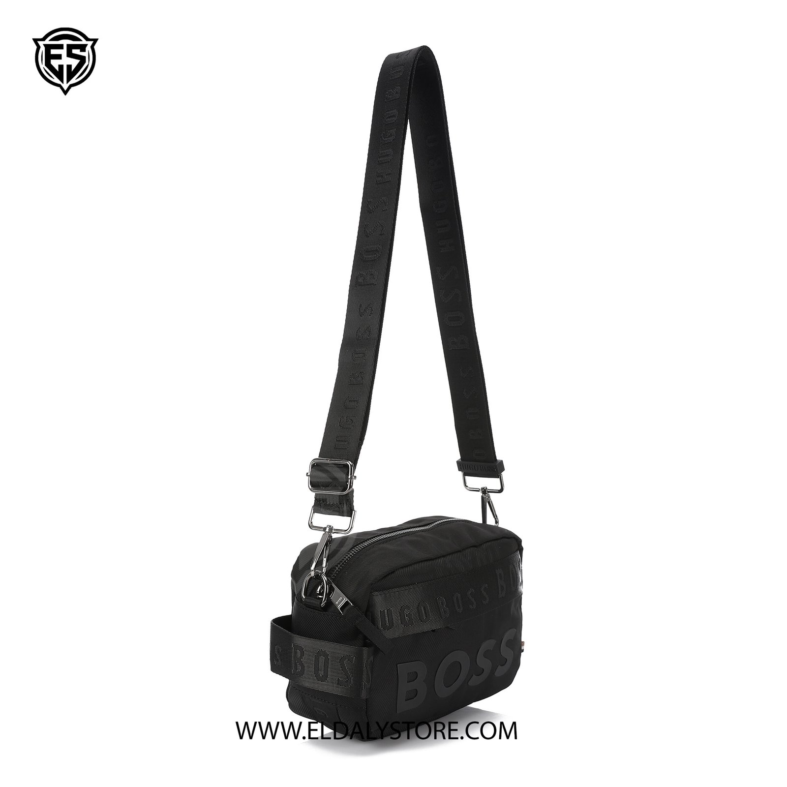 - Iconic Branding: Features a prominent tonal “BOSS” raised logo on the front and a woven “HUGO BOSS” repeating pattern on the trim and strap.
