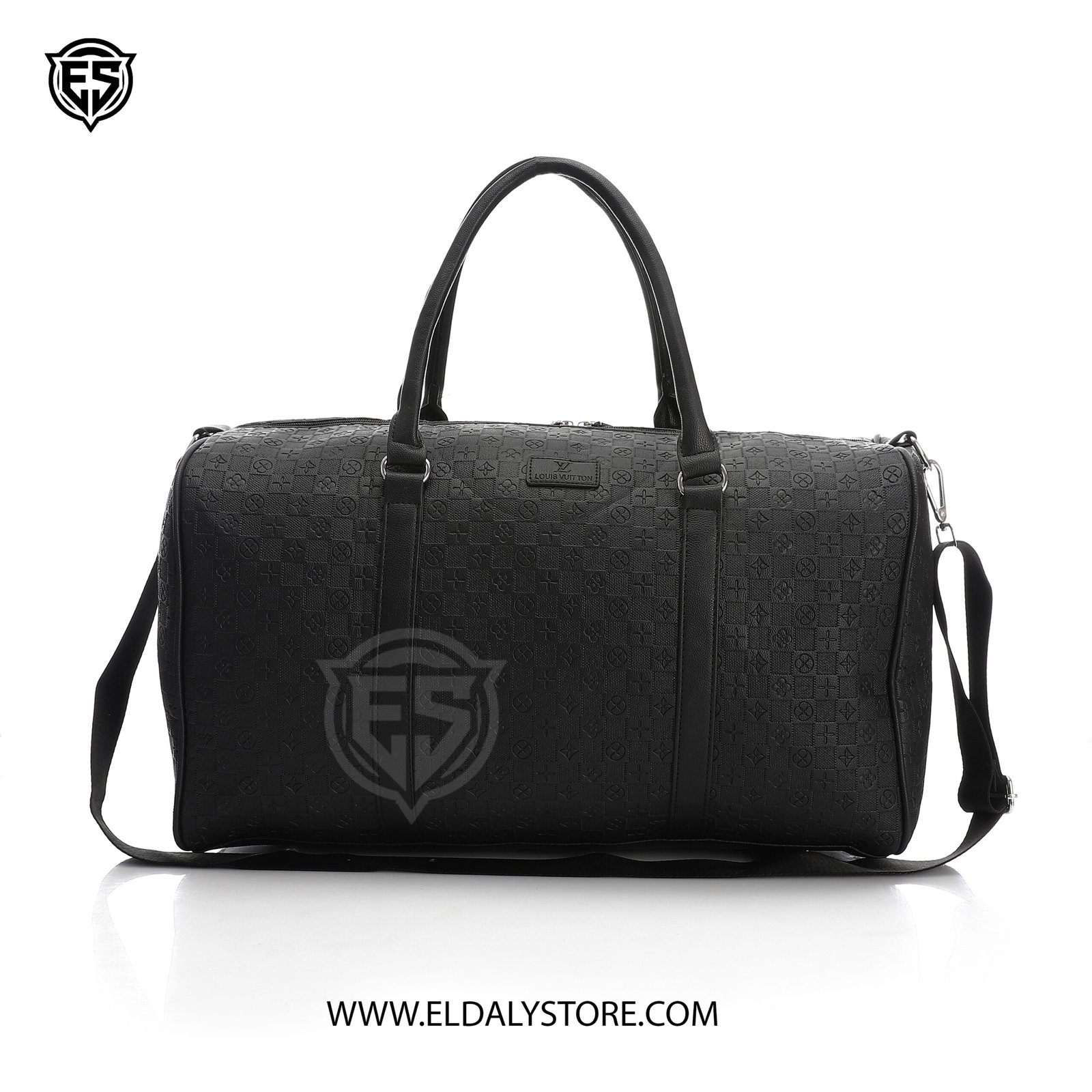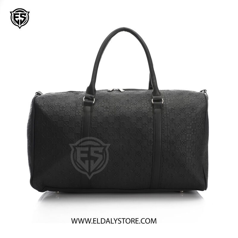 Travel in luxury with this Louis Vuitton embossed monogram duffel bag. A timeless black-on-black design featuring the iconic LV logo, sturdy top handles, and an adjustable shoulder strap, perfect for weekend travel or a premium gym accessory.