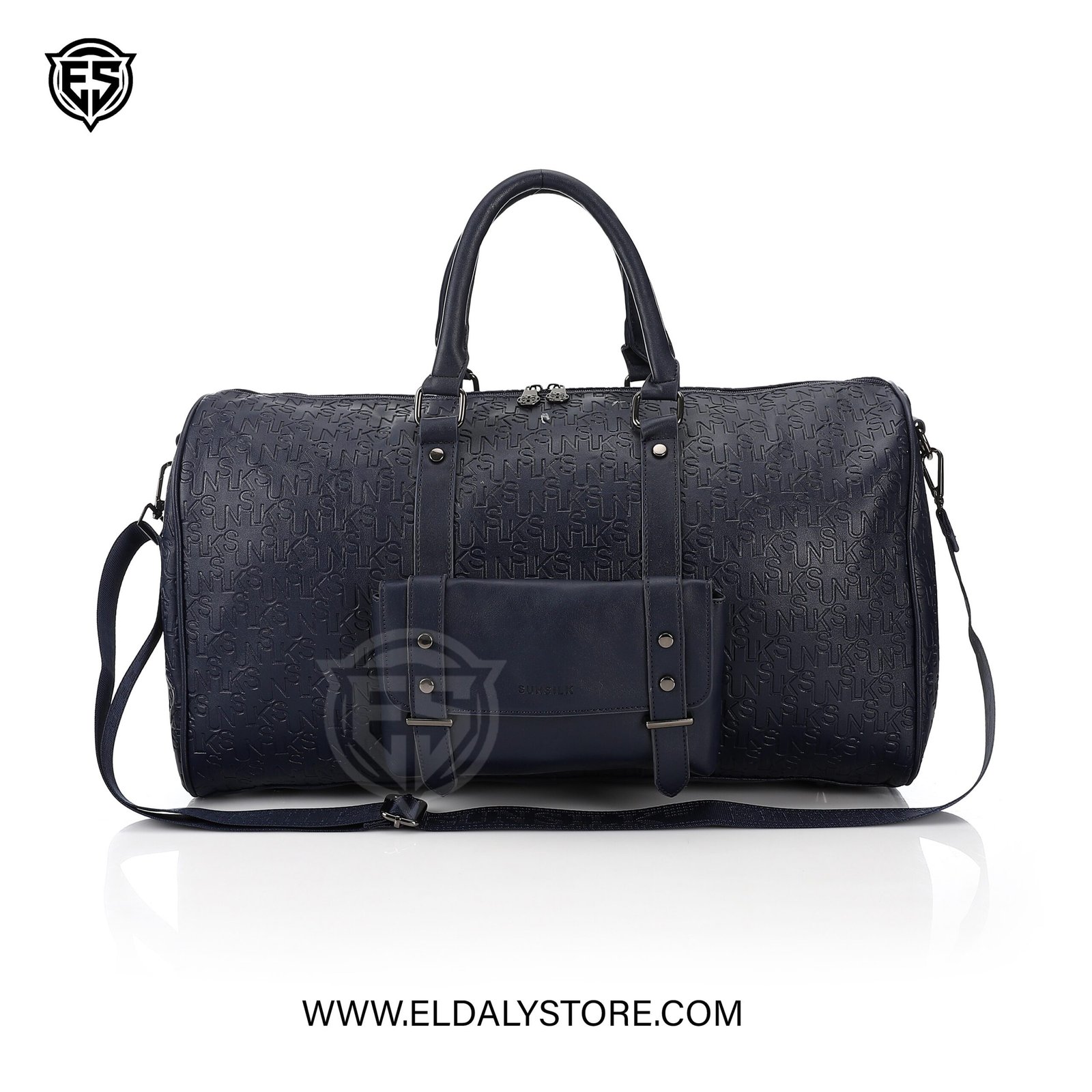 Elevate your travel style with the Sunsilk Embossed Monogram Duffle Bag. Featuring a sophisticated navy blue finish, premium embossed branding, and a functional front utility pocket, this durable bag is the perfect companion for weekend getaways and short trips.