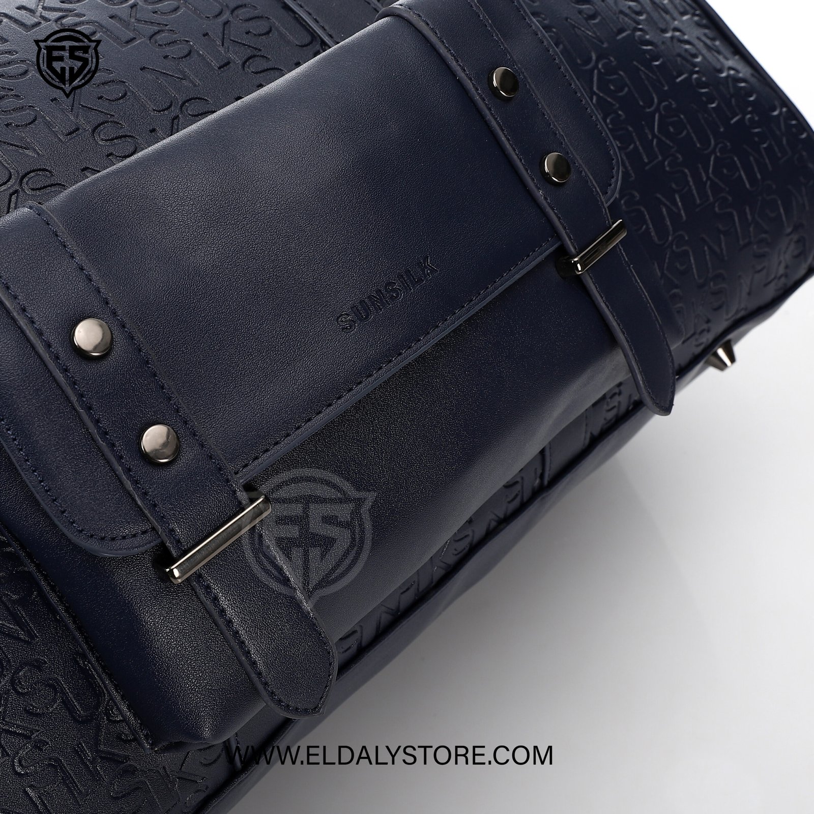 Experience the perfect blend of luxury and utility with the Sunsilk Embossed Monogram Travel Duffle Bag. Designed for the modern traveler, this duffle bag features a striking navy blue exterior, meticulously detailed with the iconic Sunsilk monogram pattern embossed throughout the leather-effect material.