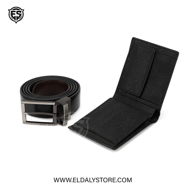 The Hugo Boss Leather Belt and Wallet Set is a masterclass in understated luxury. Designed for the individual who appreciates quality and cohesion, this set brings together two essential accessories that define a polished look.
