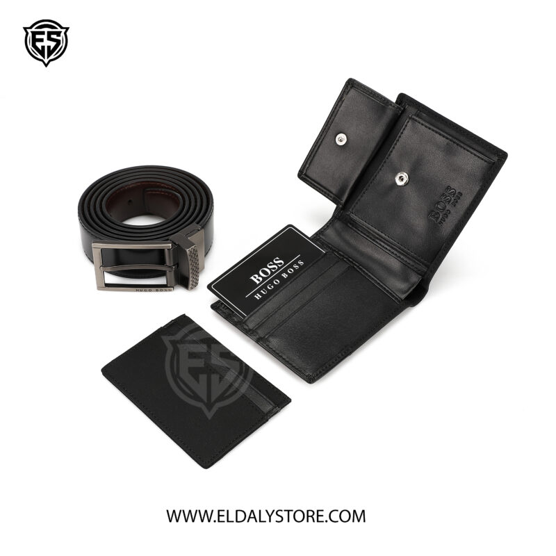 - Bifold Leather Wallet: A traditional silhouette featuring multiple card slots, a dedicated bill compartment, and a secure snap-button coin pocket. Embossed with the iconic Hugo Boss logo for a subtle, luxurious touch.