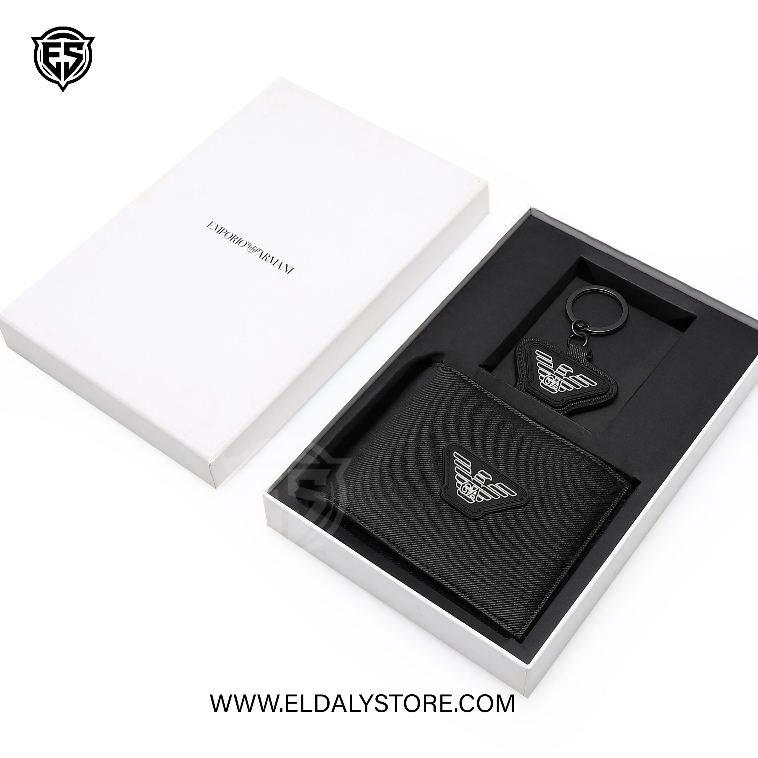 Experience the pinnacle of contemporary style with this Emporio Armani accessory set. Meticulously crafted for the modern individual, this set features a bifold wallet and a matching signature keychain, both showcasing the iconic eagle logo in a striking raised finish.