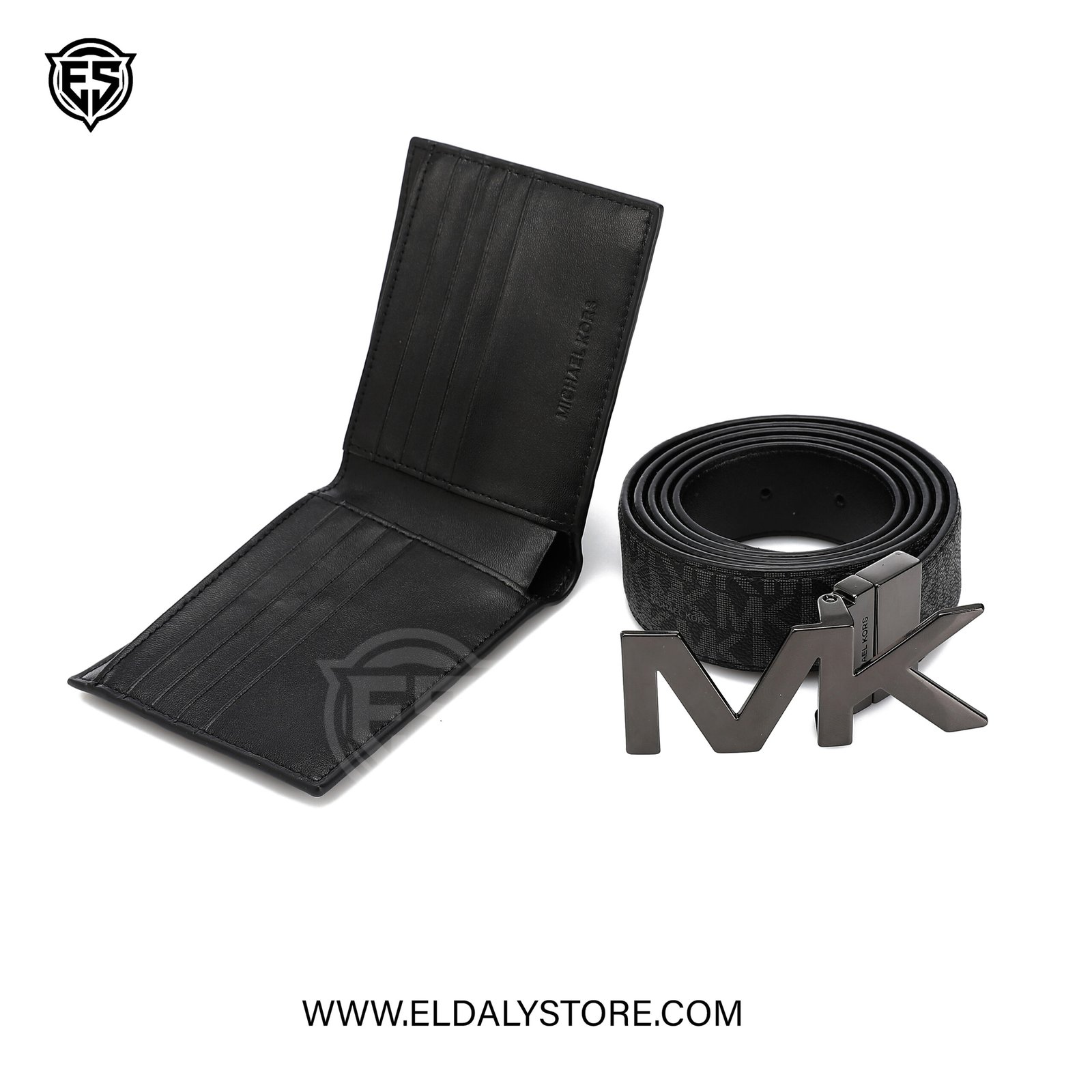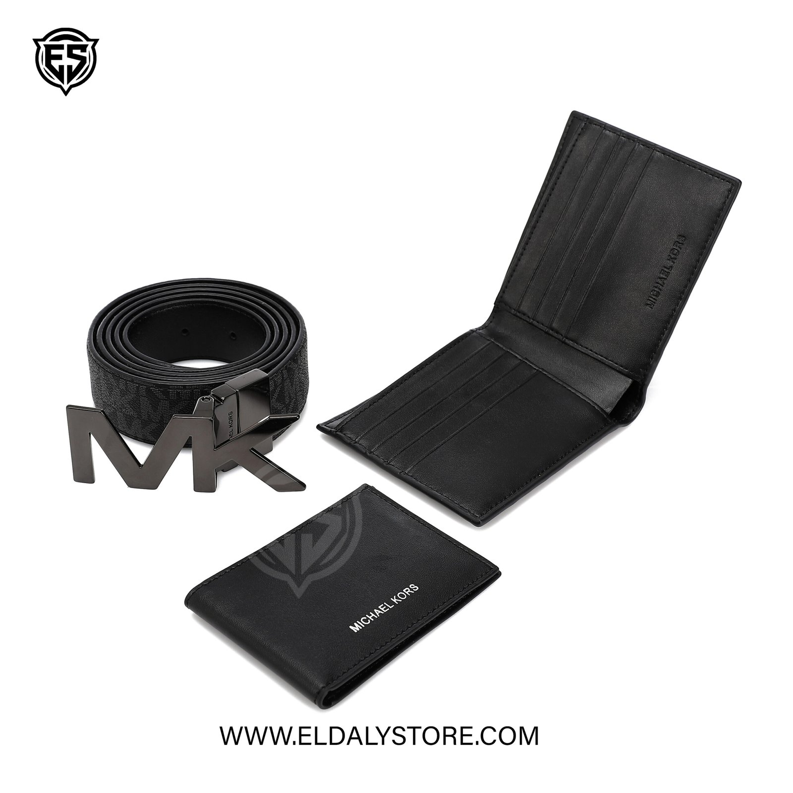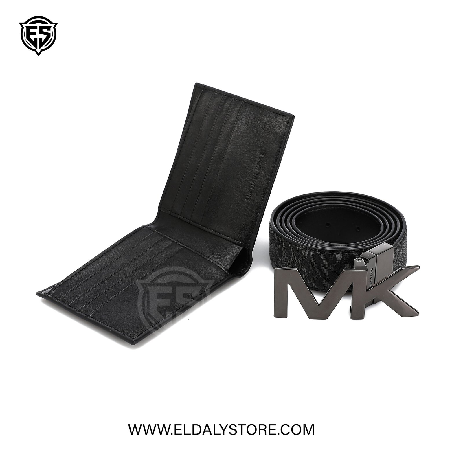 Elevate your daily essentials with this premium Michael Kors accessory set. Featuring a signature monogram leather belt with a bold “MK” plaque buckle and a matching bifold wallet, this coordinated duo offers the perfect blend of luxury and functionality.