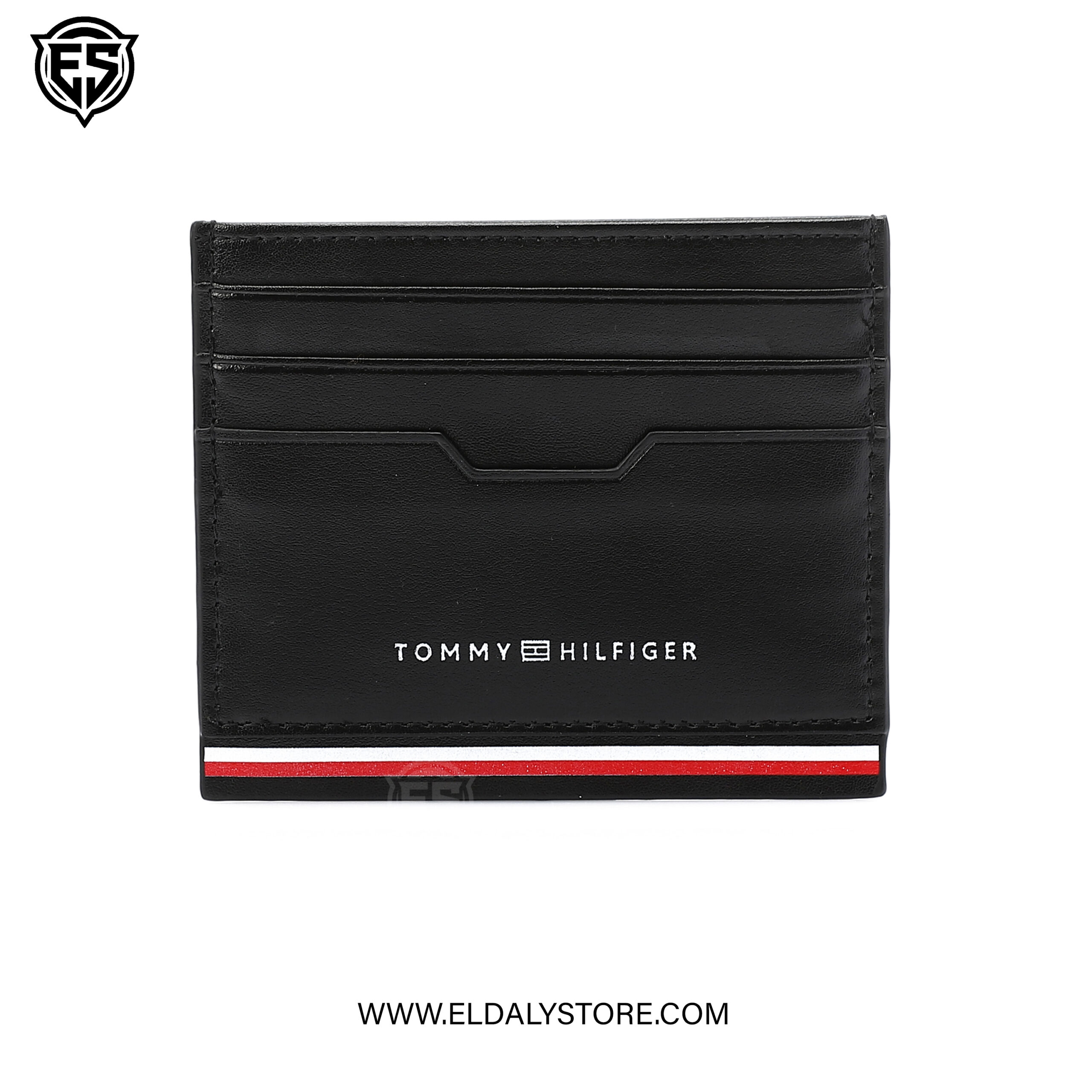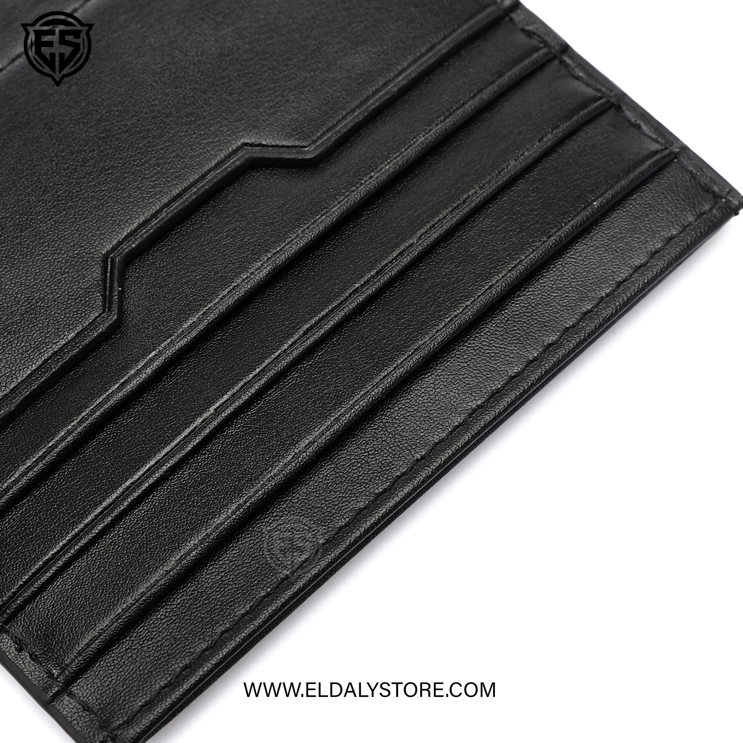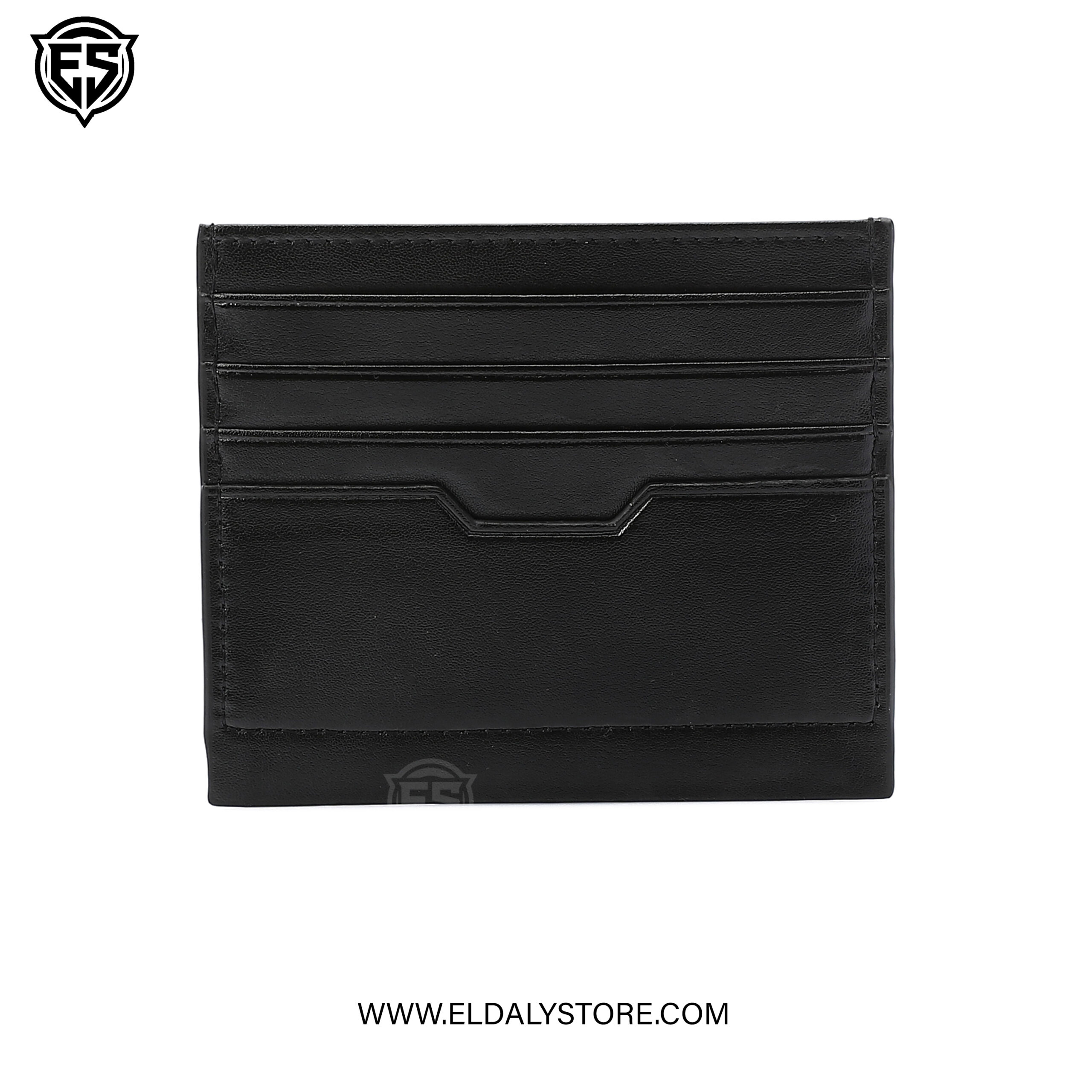 The card holder features a sophisticated blend of smooth and pebble-grain leather finishes. The lower section typically utilizes the textured pebble grain for better durability against daily wear, while the top remains smooth.