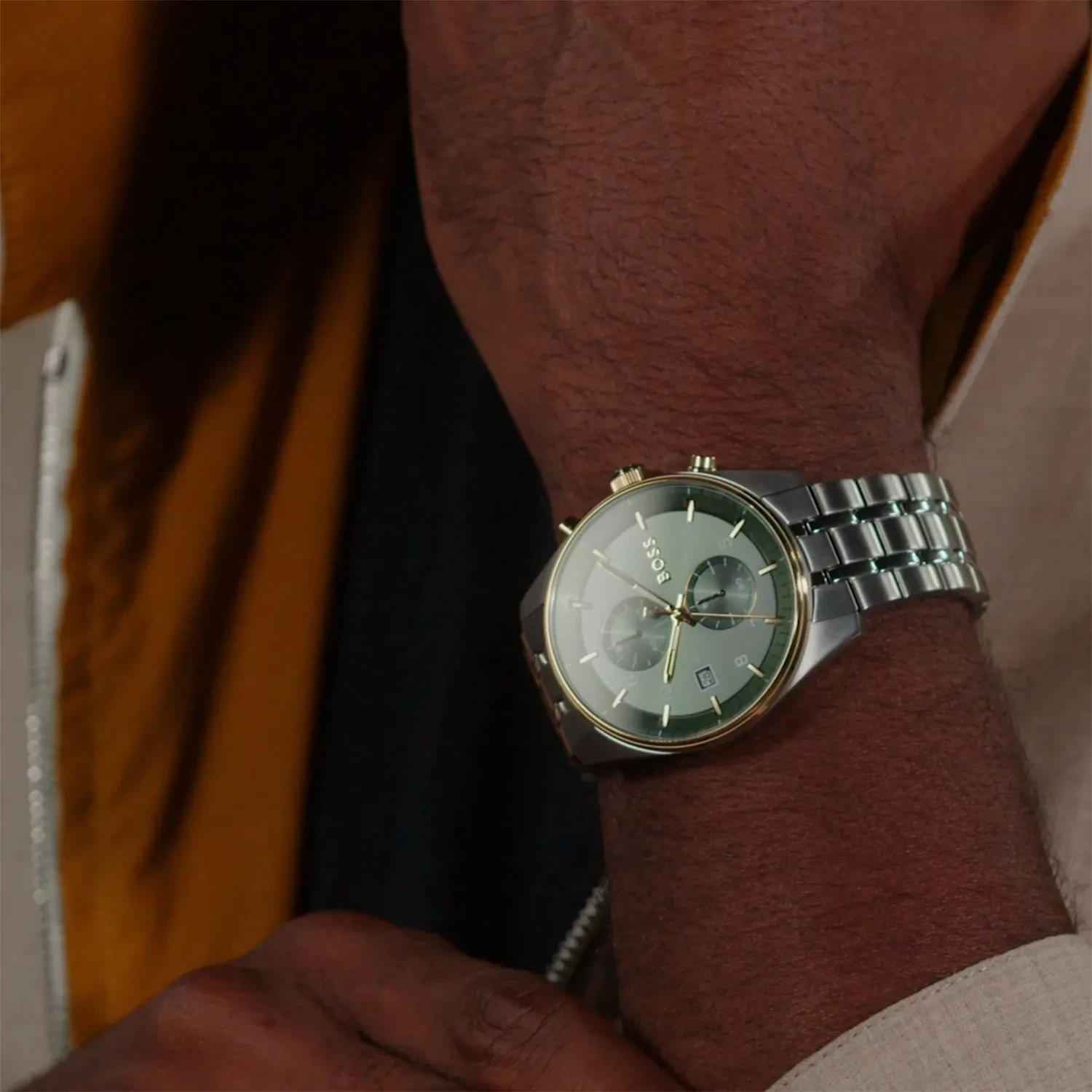 Special Features: Mineral Crystal, Date Display, Chronograph Sub-dials, Two-tone Bezel, Deployment Clasp