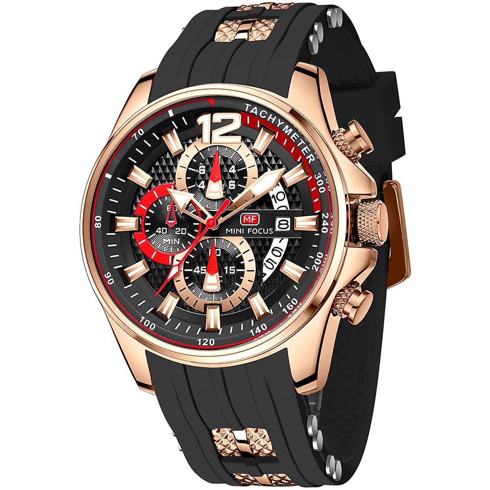 mf0350g mini focus watch for men black dial rubber strap quartz battery analog chronograph 7