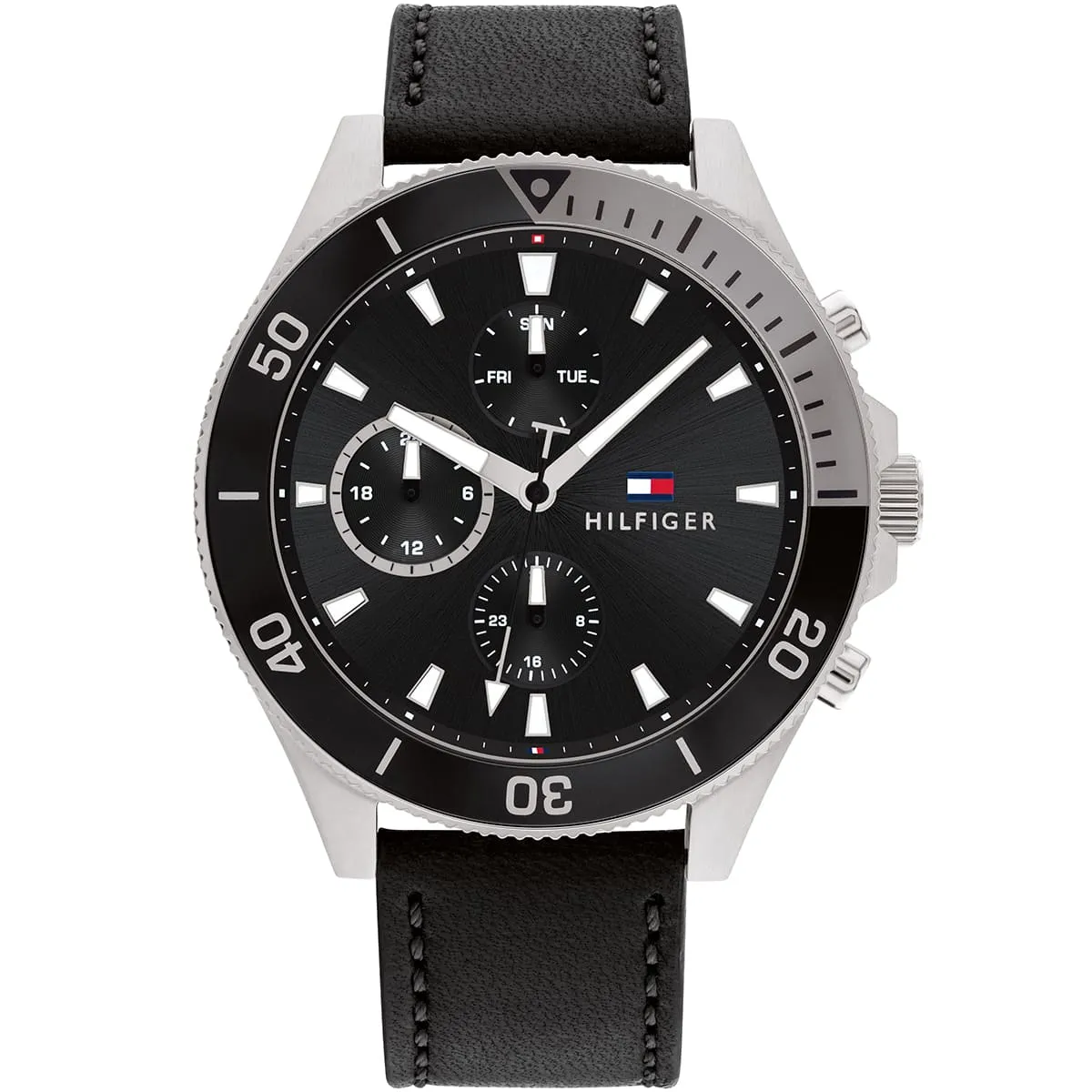 Special Features: Day and date display, 24-hour format, scratch-resistant mineral crystal, Tommy Hilfiger logo at 12 o’clock