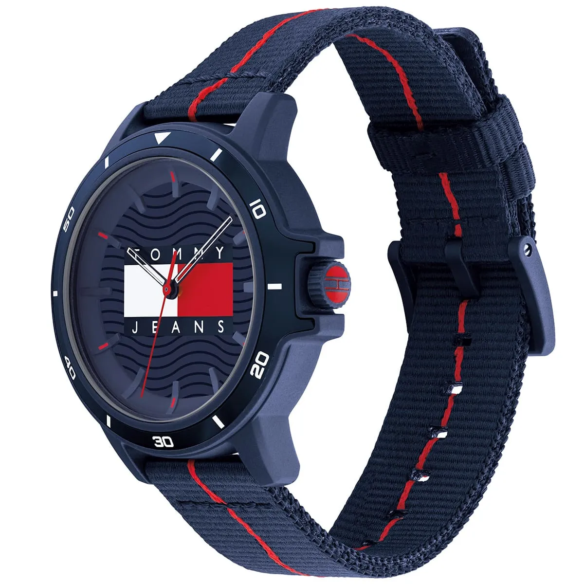 Special Features: Eco-friendly design with recycled strap, navy dial with red stripe, lightweight, comfortable, casual and semi-formal use
