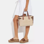 - Detachable strap with 20 1/2″ drop for shoulder or crossbody wear