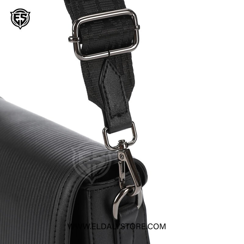 Step out in style with the premium Sunsilk Black Textured Crossbody Bag. Designed for the contemporary individual who values both fashion and functionality, this versatile messenger bag ensures your daily essentials are secure and easily accessible. The sophisticated black exterior boasts a striking ribbed texture on the front flap, seamlessly contrasting with the smooth finish of the main body.