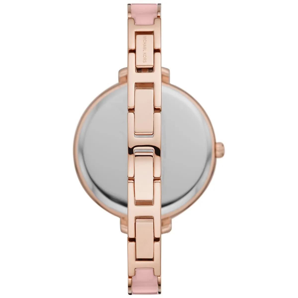 Special Features: Crystal-accented topring, minimalist rose gold dial, blush acetate inlay bracelet links