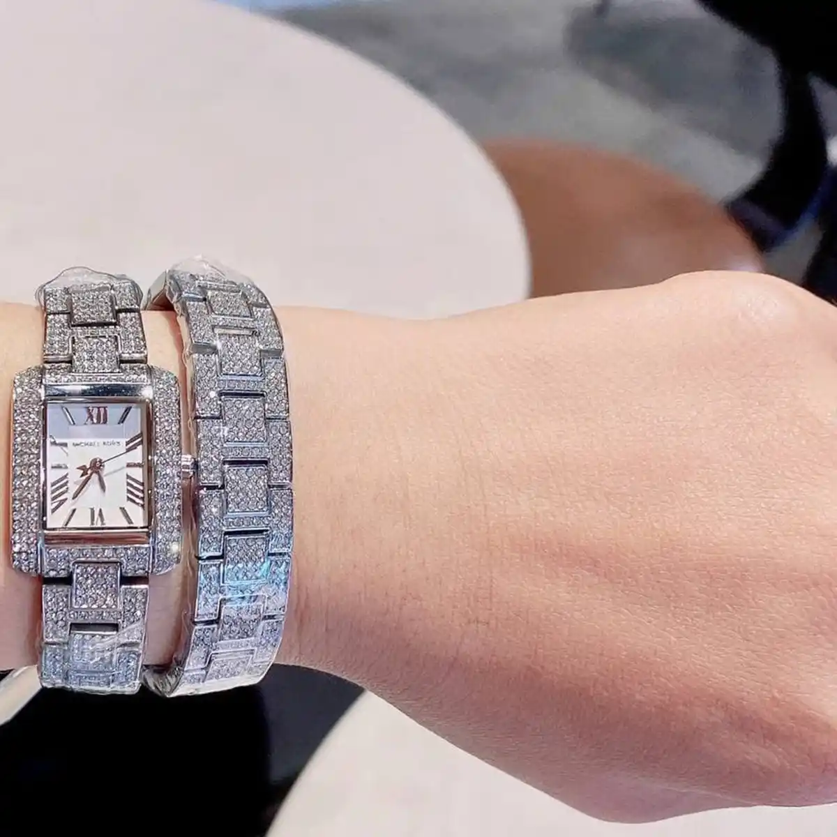 Strap Material: Stainless Steel (Double-Wrap Pavé Bracelet)