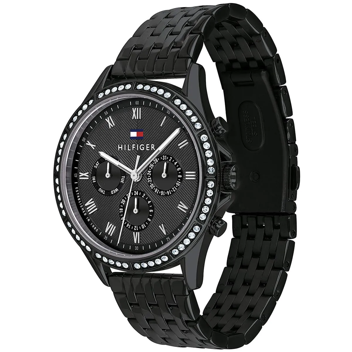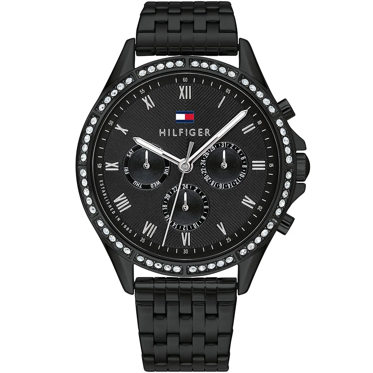 Special Features: Crystal-set bezel, multifunction features, Roman numeral markers