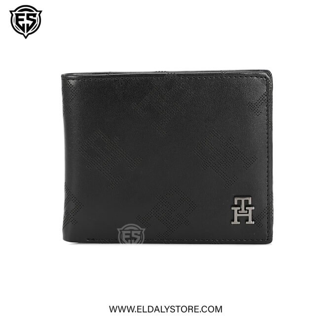 Elevate your daily essentials with this sophisticated Tommy Hilfiger bifold wallet. Crafted from premium black leather, it features a unique perforated "TH" monogram pattern and a sleek metal logo hardware. Designed for functionality, it includes multiple card slots, a dedicated bill compartment, and a removable passcase for added versatility.