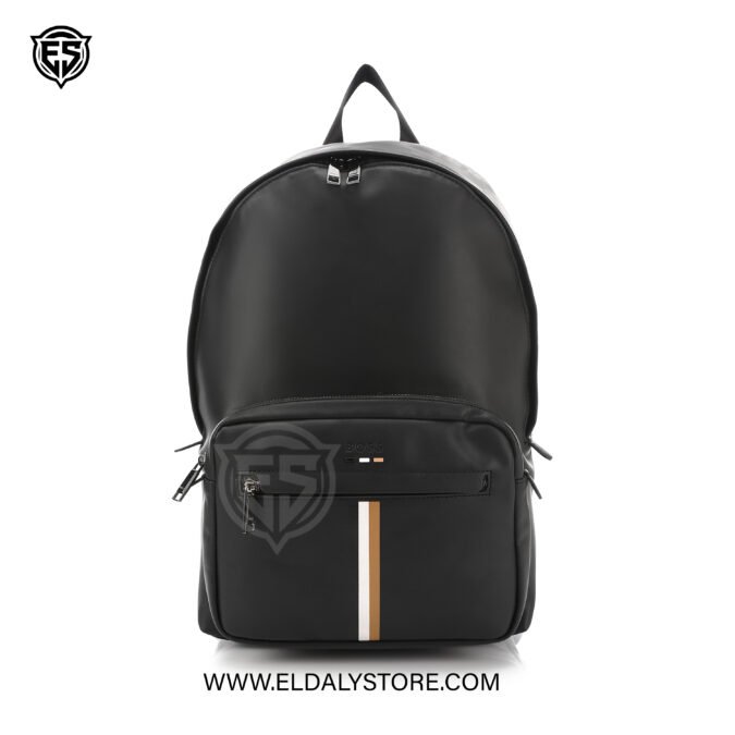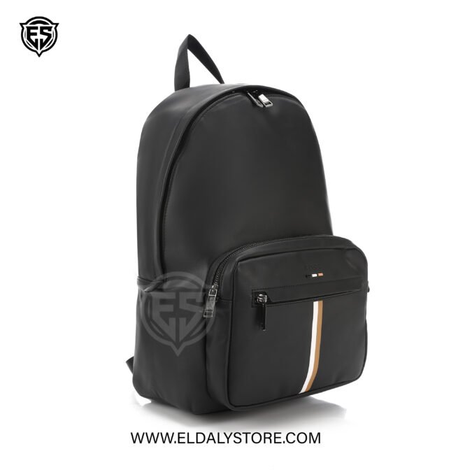 Elevate your daily commute with this sleek Hugo Boss backpack. Crafted from premium matte-finish synthetic leather, it features a spacious main compartment, a secure front zip pocket, and the iconic signature stripe detail for a sophisticated, modern aesthetic.
