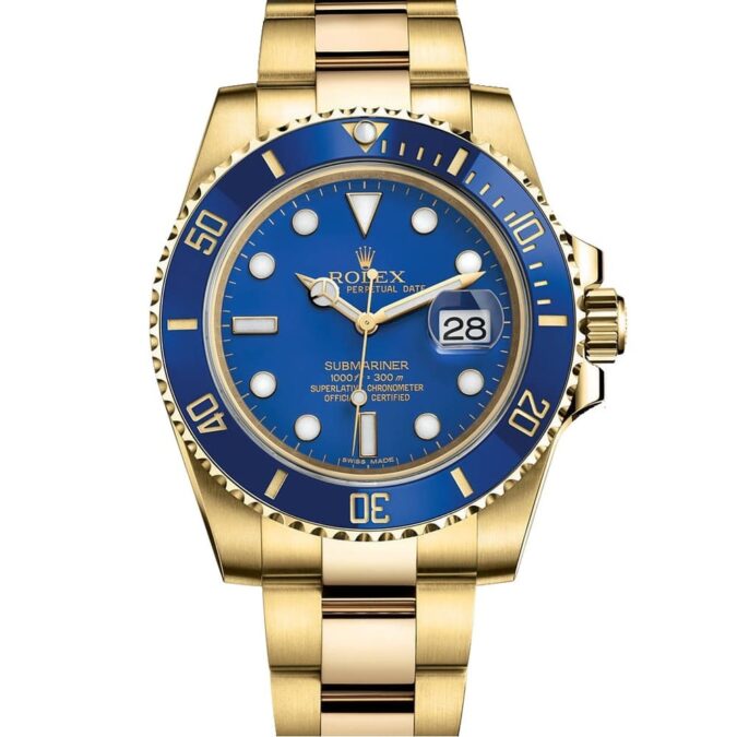 ROLEX OYSTER PERPETUAL SUBMARINER CERAMIC BEZEL WATCH BLUE WITH STAINLESS STEEL GOLD BELT