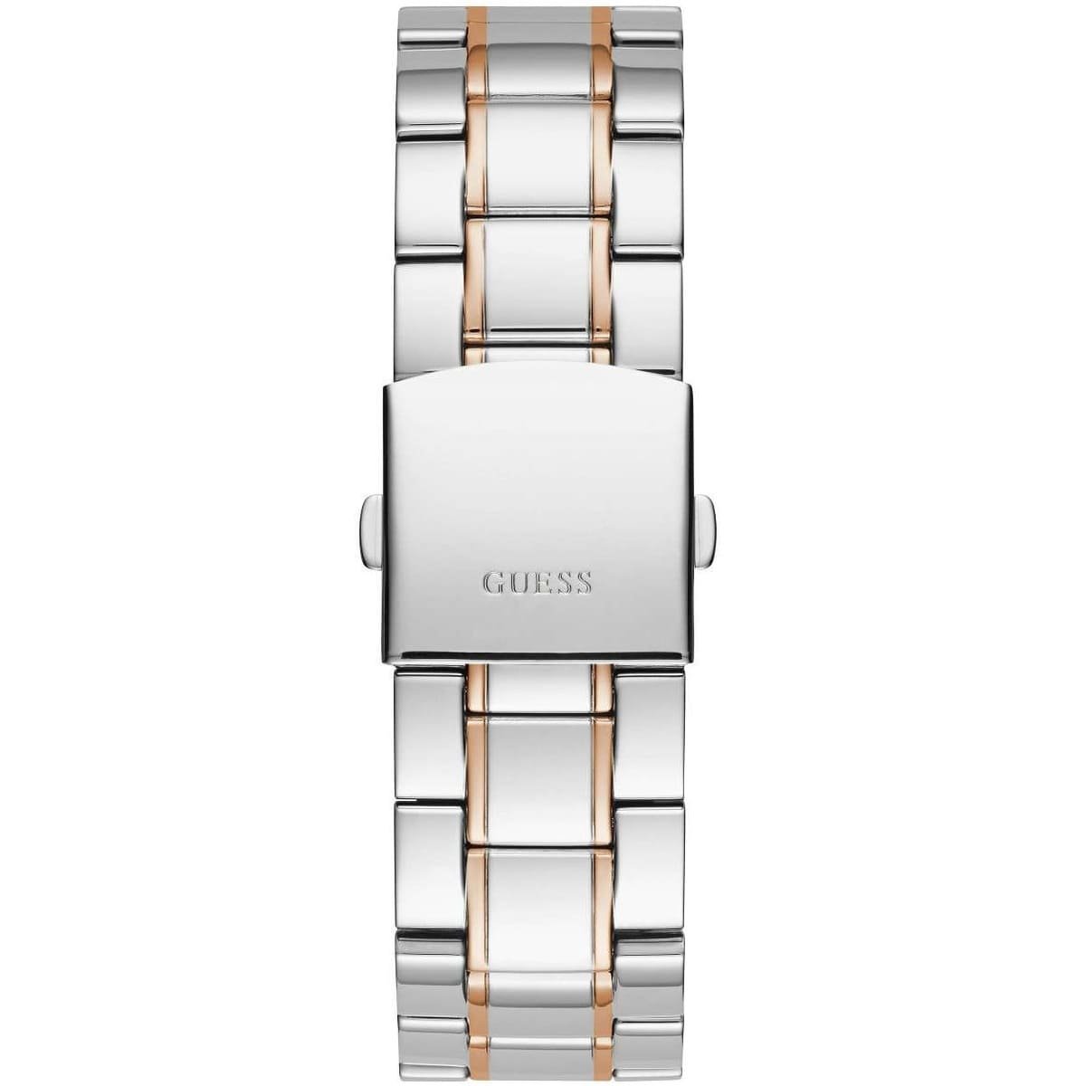 The Guess W1309G4 men’s watch features a bold blue dial, rose gold accents, and a two-tone stainless steel bracelet. Stylish, durable, and water-resistant, it’s the perfect timepiece for both everyday wear and formal occasions.